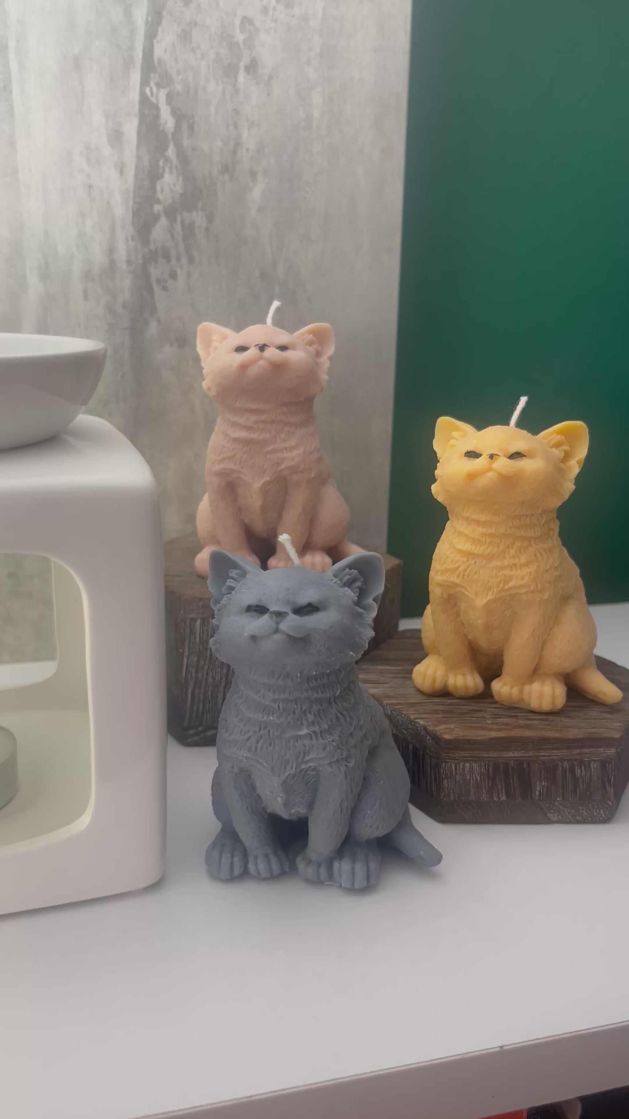 These realistic cat candles are hand poured using soy wax & a cotton wick. They are 9cm tall and come in 3 different colours and multiple scents to choose from. The eyes are hand painted with wax paint and should you wish to, they are safe to burn.